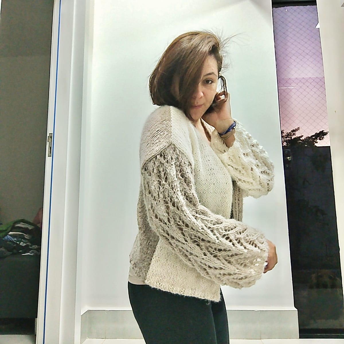 Aqui você encontra o PDF desta receita. A receita inclui lista de materiais para inverno e verão, amostra, fotos, medidas com um desenho e carreiras descritas uma por uma para a execução da peça (não tem gráfico do ponto, ele é descrito carreira por carreira). É uma peça para nível intermediário no tricô portanto conhecer os pontos básicos, tranças e técnicas no tricô facilita a compreensão da receita escrita.